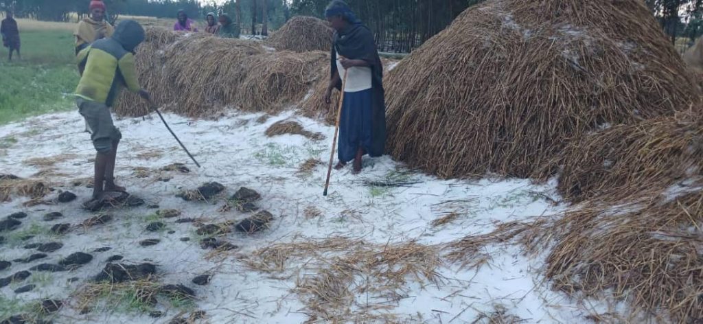 ኅዳር 14 ቀን 2017 ዓ.ም ከቀኑ ስምንት ሰዓት ጀምሮ ለ30 ደቂቃ የጣለው ከባድ በረዶ የቀላቀለ ዝናብ በሶስት ቀበሌዎች ከ500 ሄክታር መሬት በላይ የደረሱ ሰብሎች ላይ ጉዳት አድርሷል ነው የተባለው፡፡