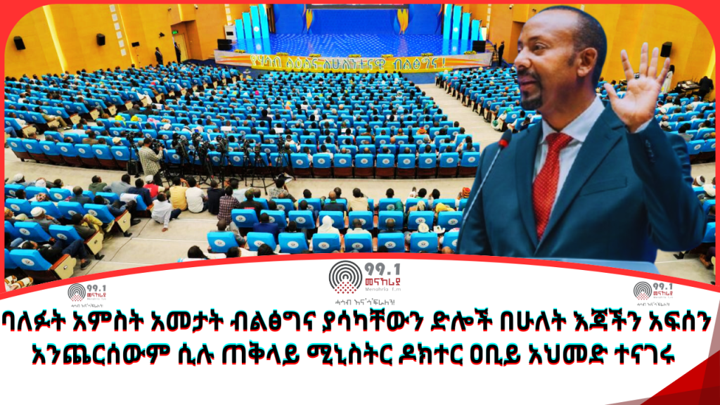 ኅዳር 21 ቀን 2017(መናኸሪያ ሬዲዮ) ጠቅላይ ሚኒስትር ዶክተር ዐቢይ አህመድ ብልፅግና ፓርቲ ባለፉት አምስት አመታት ያሳካቸው ድሎች በሁለት እጃችን አፍሰን አንጨርሰውም ሲሉ ፓርቲዊ አምስተኛ የምስረታ በዓሉን በአከበረበት ወቅት ተናግረዋል።