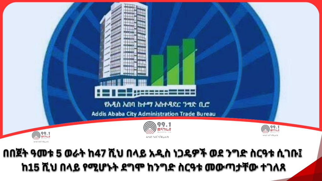 ታኅሳስ 11 ቀን 2017(መናኸሪያ ሬዲዮ) ከሐምሌ ወር ጀምሮ በከተማዋ 15 ሺህ 99 ነጋዴዎች ከንግድ ስርዓቱ መውጣታቸውን የአዲስ አበባ ንግድ ቢሮ አስታውቋል፡፡