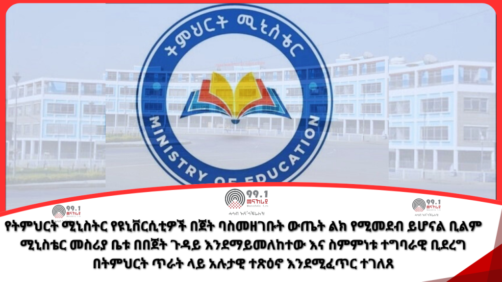 ታኅሳስ 18 ቀን 2017(መናኸሪያ ሬዲዮ) የትምህርት ሚኒስትር ፕሮፌሰር ብርሃኑ ነጋ ከሰሞኑ በሰጡት መግለጫ የዩኒቨርሲቲዎች በጀት ባስመዘገቡት ውጤት ልክ የሚመደብ ይሆናል ማለታቸውን ተከትሎ መናኸሪያ ሬዲዮ ውሳኔው በትምህርት ዘርፉ ላይ የሚኖረውን አሉታዊ እና አዎንታዊ ተጽዕኖ በተመለከተ ባለሙያዎችን አነጋግሯል።