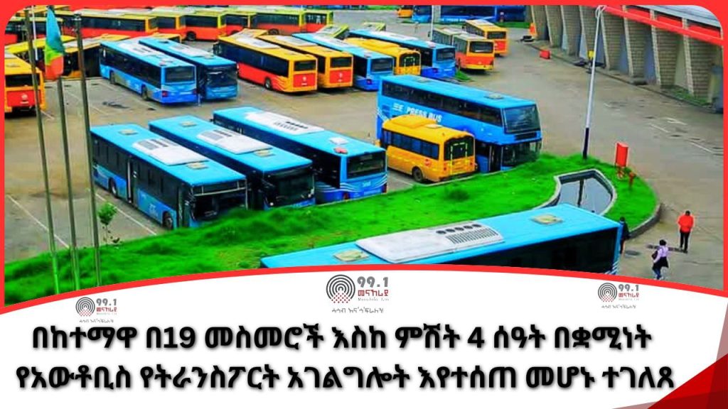 ታኅሳስ 21 ቀን 2017(መናኸሪያ ሬዲዮ) በአዲስ አበባ ከተማ የአውቶቢስ ትራንስፖርት አገልግሎት ከሚሰጡ መስመሮች 19ኙ በቋሚነት እስከ ምሽት 4፡00 ሰዓት አገልግሎት እየሰጡ መሆኑን የከተማው የአውቶቢስ ድርጅት ለመናኸሪያ ሬዲዮ አስታውቋል፡፡
