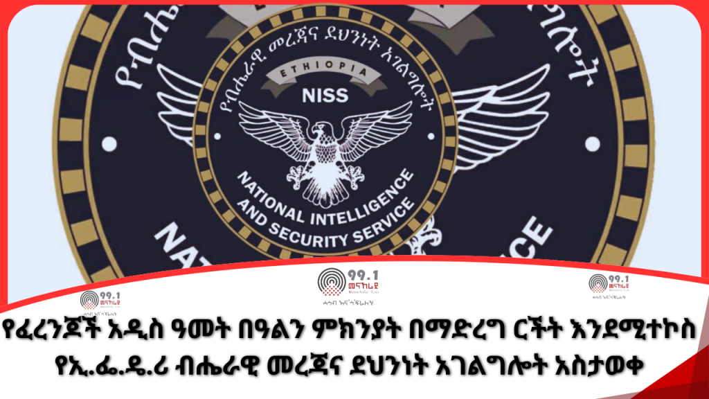 ታኅሳስ 22 ቀን 2017(መናኸሪያ ሬዲዮ) የኢ.ፌ.ዴ.ሪ ብሔራዊ መረጃና ደህንነት አገልግሎት የደህንነትና ልዩ ኦፕሬሽን ዋና መምሪያ ዛሬ ታህሳስ 22 ቀን 2017 ዓ/ም የሚከበረውን የፈረንጆቹን የአዲስ ዓመት ዋዜማ በዓል ምክንያት በማድረግ ከሌሊቱ 6:00 እስከ 6:15 ሰዓት ላይ ርችትእንደሚተኮስ አስታውቋል፡፡