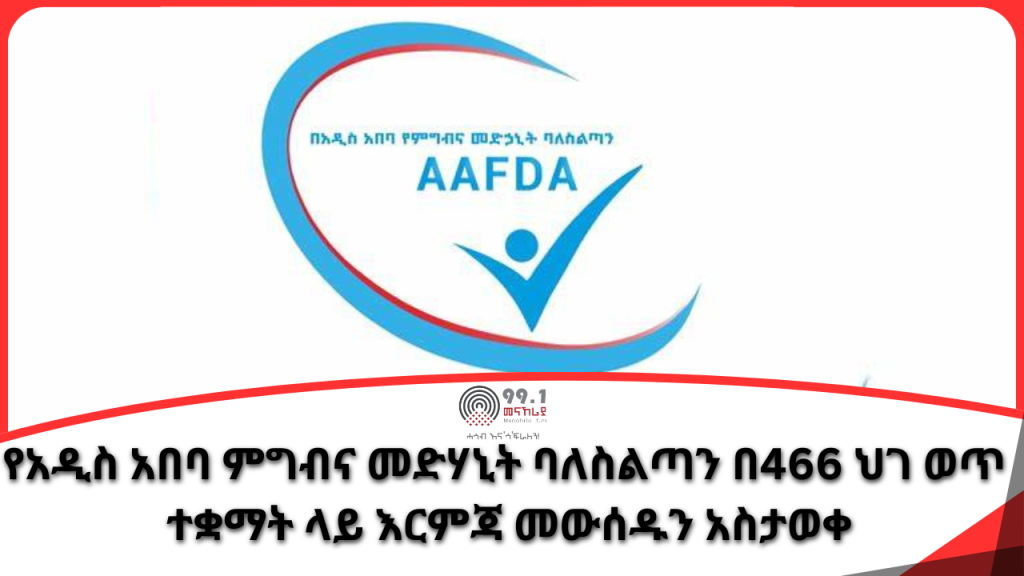 የአዲስ አበባ ምግብና መድሃኒት ባለስልጣን በ466 ህገ ወጥ ተቋማት ላይ እርምጃ መውሰዱን አስታወቀ